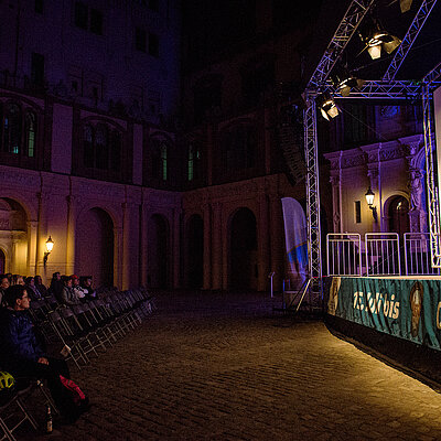 Kino am Pfaffenteich mit Filmklassikern | Ausstellung des Szenenbildners Alfred Hirschmeier | Kunstaktion „Die Jahrhundert-Spur" von Otto Dressler | Kunstauktion mit Werken von Alfred Hirschmeier, Willy Günther, Otto Sander-Tischbein | Perfomance von Norbert Bleisch in der Diskussion | Kunsttobjekte an Decken und Wänden des neustädtischen Palais | über 10.000 Zuschauer besuchten den Festivalauftakt | Partystimmung in der ganzen Stadt - Toll!