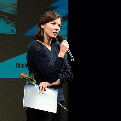 "Fassaden – das sind Muster der Täter, das sind Überlebensstrategien von Frauen, und das sind Hauswände, hinter denen Gewalt geschieht. Gewalt, die unsichtbar bliebe, gäbe es nicht Filme wie diesen. Die klug gewählte, klare und eigene Form zeugt von Mut und Feingespür der Filmemacherin. Durch Reduktion und Abstraktion erschafft sie einen Raum, der es erst ermöglicht, sich auf die bittere Realität einzulassen. Ein Tanz verkörpert das Unzeigbare. Vier persönliche Geschichten von Frauen verfließen zu einer gemeinsamen Stimme, die das Unaussprechliche verbalisiert. Der Blick hinter die Fassaden entsteht gedanklich vor unserem innren Auge, und zeichnet ein differenziertes Bild häuslicher Gewalt. Der Film wird zum Aufschrei, den unsere Gesellschaft und Politik bisher nicht wagt. Er bricht das Schweigen für all diejenigen, die es selbst nicht können. Für diese wichtige filmische Arbeit bedanken wir uns bei Alina Cyranek mit dem Preis für den besten Dokumentarfilm."